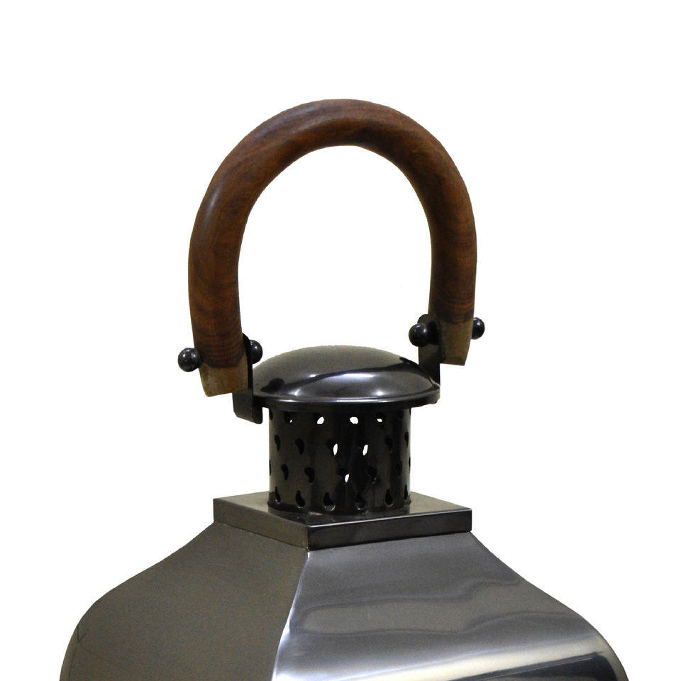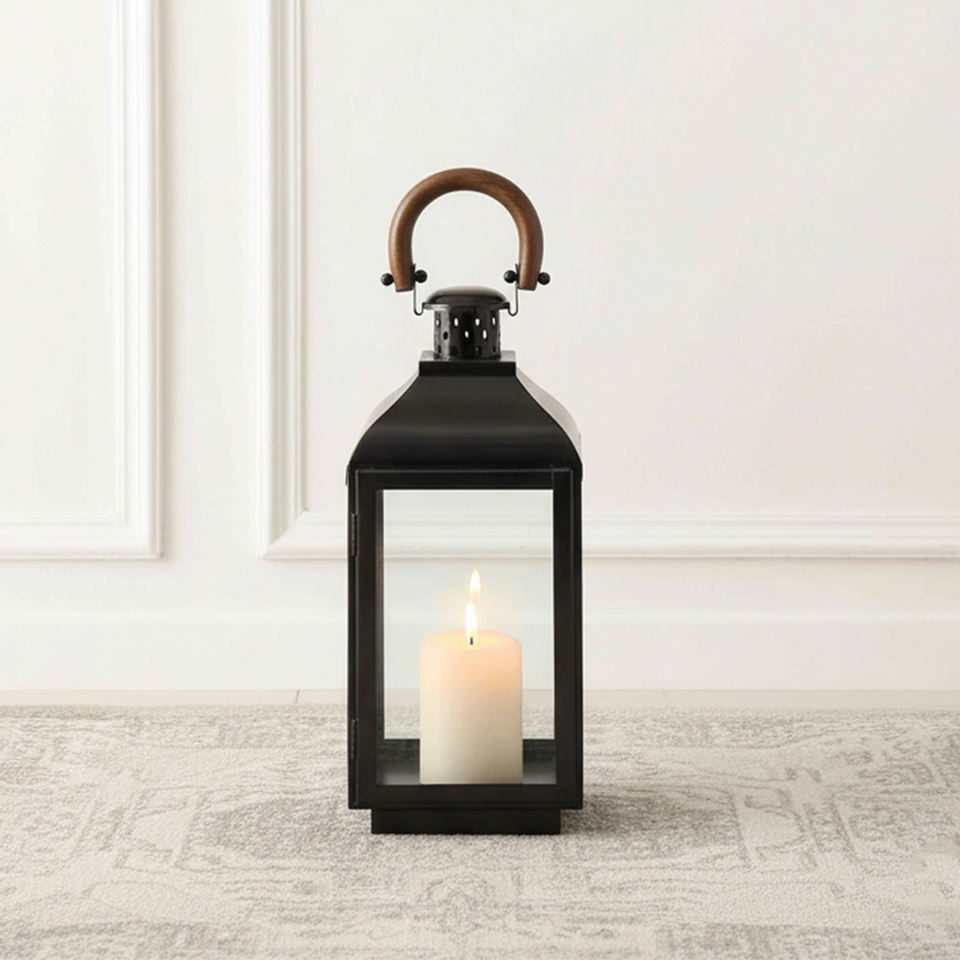 โคมไฟตกแต่งบ้านหรูหรา สแตนเลสสตีล พร้อมหูจับไม้ ขนาดกลาง เคลือบเงาคุณภาพสูง สีดำนิกเกิล