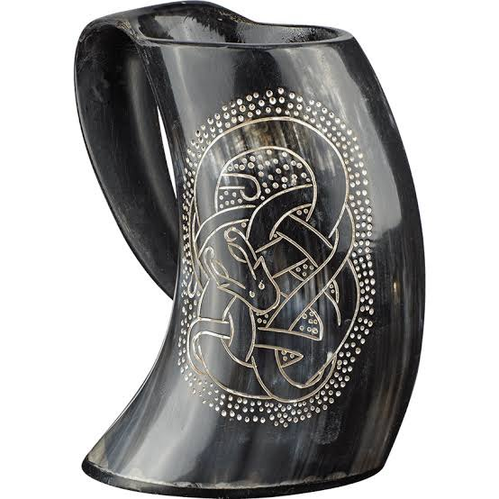 แก้วน้ำเขาสัตว์หรูหรา ทำจากเขาควายและวัวแท้ แก้วช็อตแบบวินเทจ แก้วเบียร์ทรงวiking
