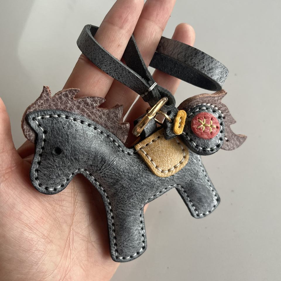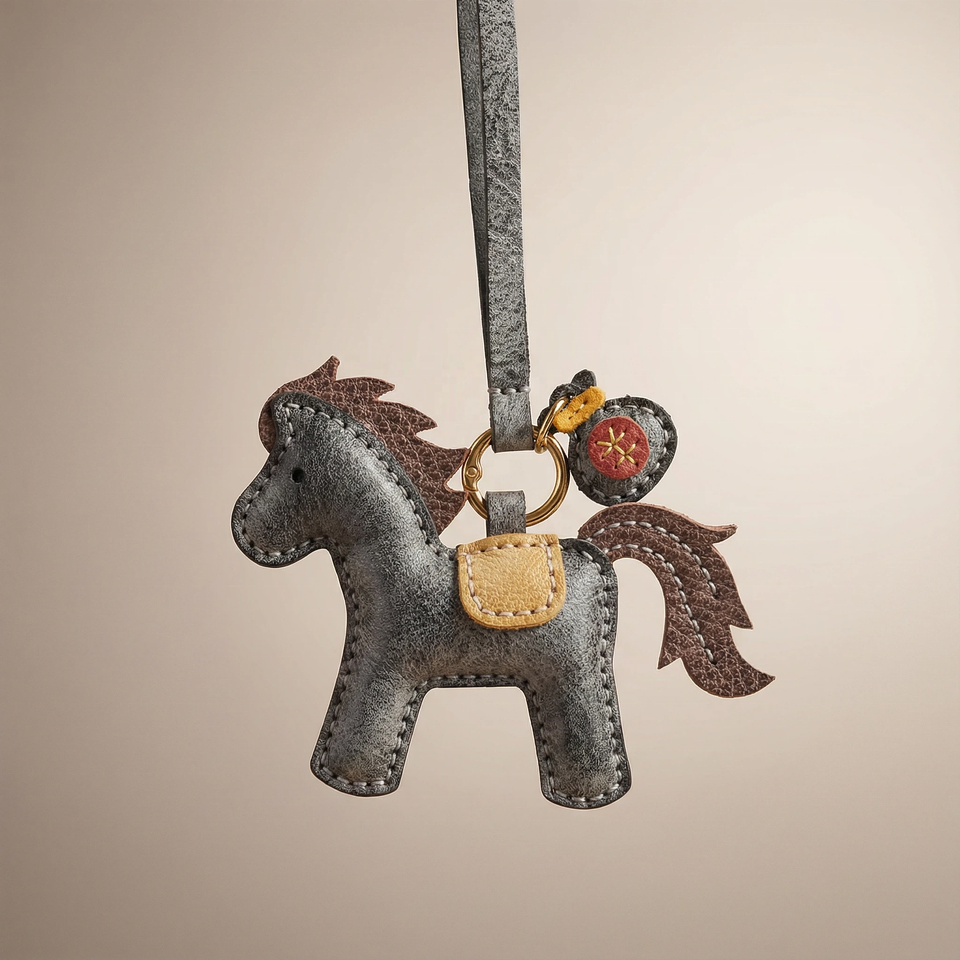 พวงกุญแจหนังแท้ประดับโลหะรูปม้าสุดหรู