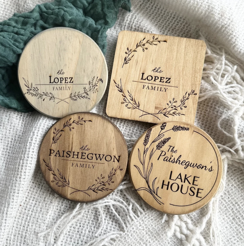 ชุดที่รองแก้วไม้สำหรับตกแต่งโรงแรมหรูหรา4ชิ้นที่รองแก้วไม้สำหรับตกแต่งโต๊ะหรือกระท่อมของตกแต่งบ้านแบบชนบทที่รองแก้วไม้