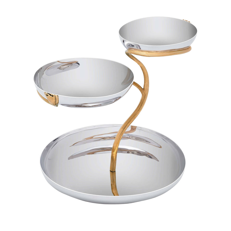 ขาตั้งเค้กโลหะดีไซน์หรูหราสำหรับงานฉลองครบรอบโรงแรมหรู ใช้สำหรับเสิร์ฟผลไม้และวางเค้กบนโต๊ะอาหาร