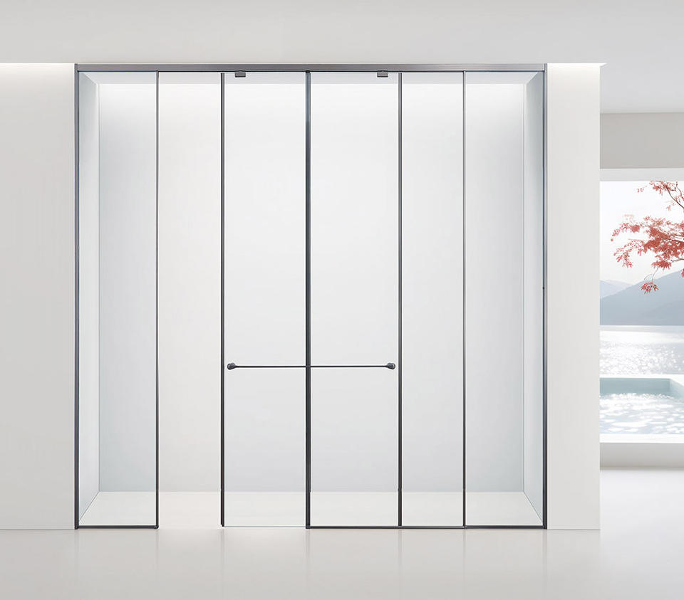กระจกนิรภัยรูปตัวทีสุดหรูตู้อาบน้ำฝักบัวเข้ามุมห้องน้ำเฟอร์นิเจอร์สำหรับวิลล่า