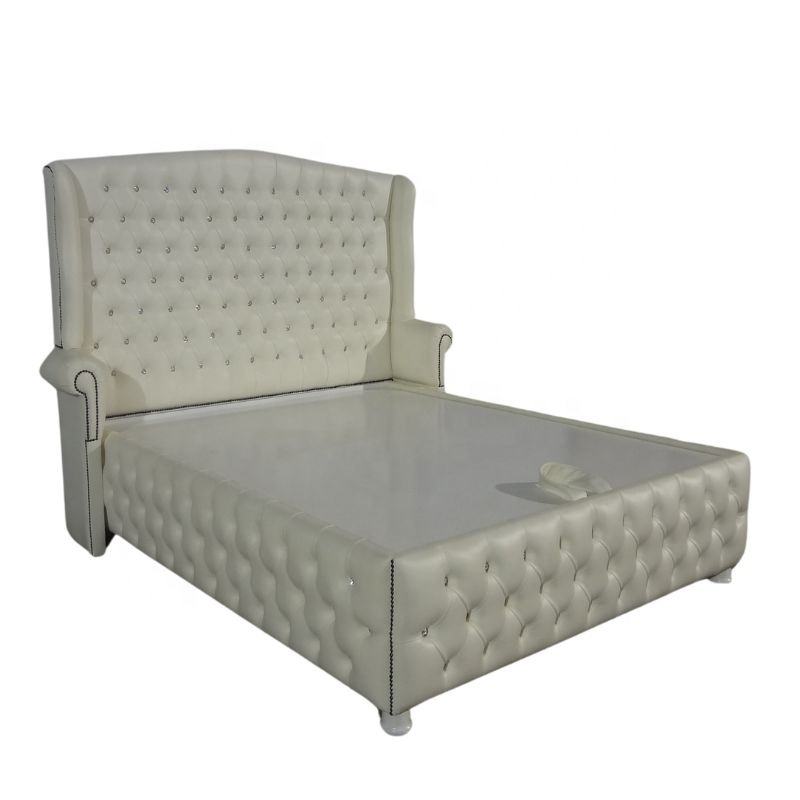เตียงไฮดรอลิกสุดหรูเตียงเก็บของหุ้มเบาะหนังสังเคราะห์และกระดุมคริสตัลสำหรับเฟอร์นิเจอร์โรงแรม