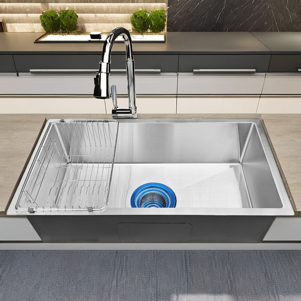 อ่างล้างจานครัวแบบตั้งบนเคาน์เตอร์ทรงโมเดิร์น ผลิตจากสแตนเลสเกรดพรีเมียม INOX 304 POSCO งานแฮนด์เมด รับประกัน 3 ปี ผลิตจากโรงงานในเวียดนาม ราคาแข่งขัน