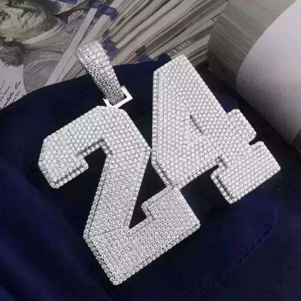 จี้เลข 24 ประดับเพชรโมอิสซาไนต์เต็มเม็ด 38 กะรัต เงินแท้ สไตล์ฮิปฮอป งานสั่งทำพิเศษ เครื่องประดับสำหรับทุกเพศ