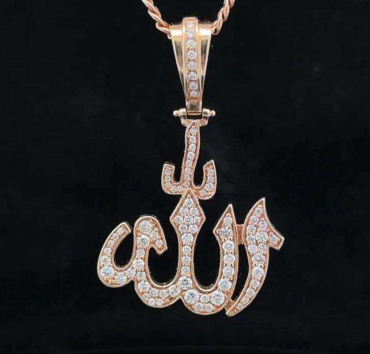 จี้พระอัลเลาะห์แบบหรูหราประดับเพชรโมอิสซาไนต์ 20 กะรัต VVS เงินสเตอร์ลิง งานฮิปฮอป ชุบทองคำสีกุหลาบ พร้อมจี้อักษรอาหรับ