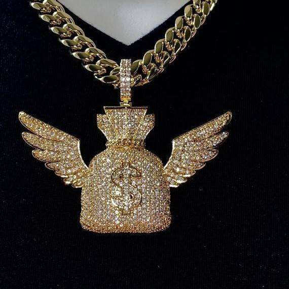 จี้รูปปีกนางฟ้าประดับเพชรโมอิสซาไนต์ VVS ดีไซน์หรูหรา พร้อมถุงเงินและสัญลักษณ์ดอลลาร์ สไตล์ฮิปฮอป SENSUOUS JEWELS PW08 เงินแท้ 925 ขนาด 20 มม.