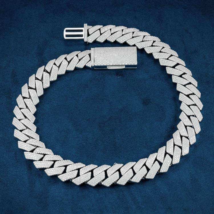 สร้อยคอคิวบาลิงค์ประดับมอสซาไนต์ทรงบาแกตต์หรูหรา ชุบทองคำขาว เงินแท้ 925 สไตล์ฮิปฮอป ของขวัญสำหรับทุกเพศ