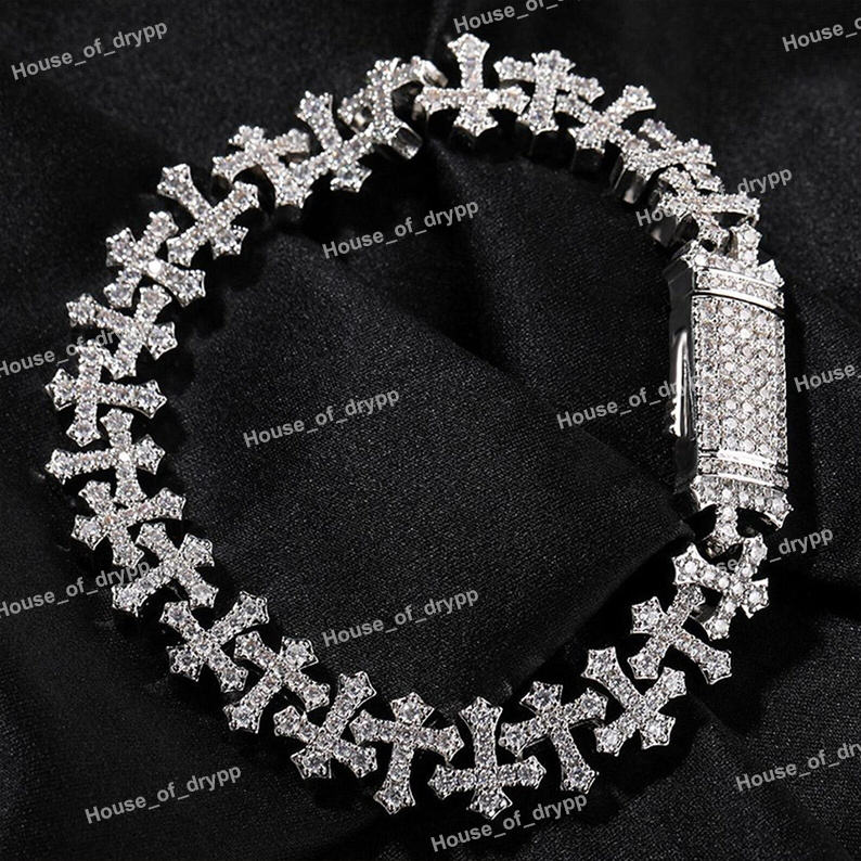 กำไลข้อมือแบบไขว้สุดเท่กำไลข้อมือ925เงินประดับเพชรแบบฮิปฮอปพร้อมกล่องเข็มกลัดเครื่องประดับสำหรับผู้ชายผู้หญิง