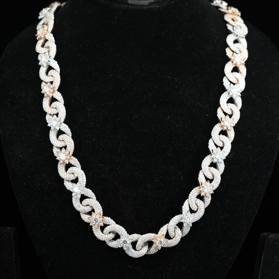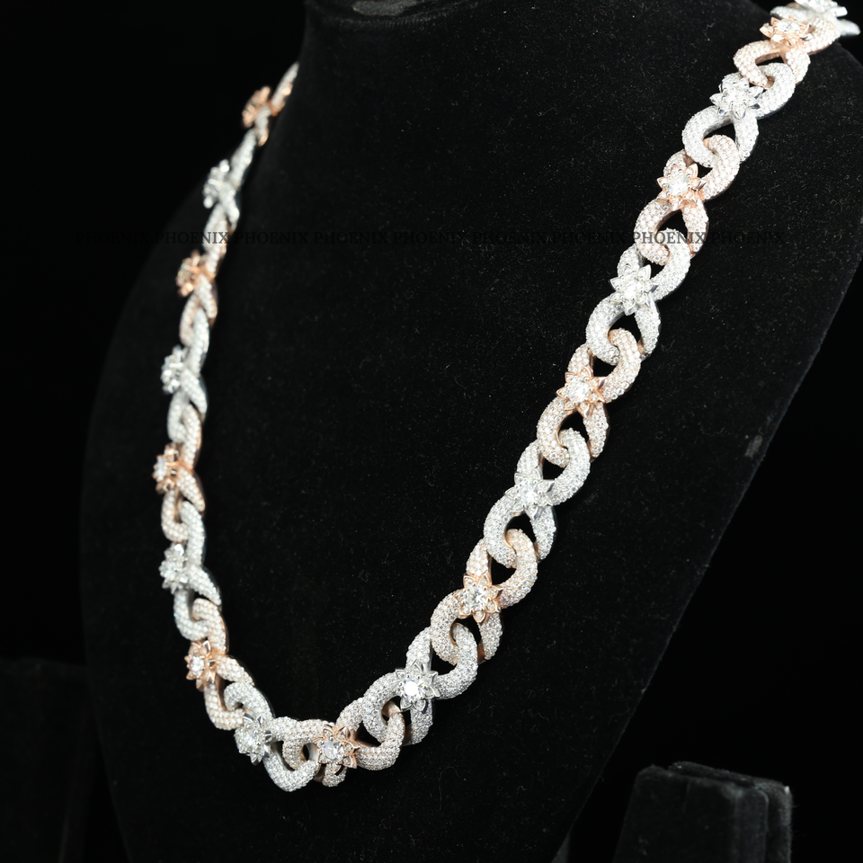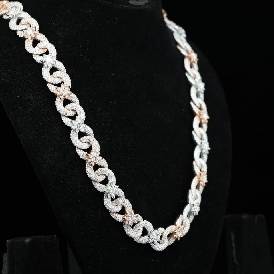 สร้อยคอคิวบันลิงค์แบบหรูหราประดับเพชร – สร้อยคอฮิปฮอปสองสีสำหรับผู้ชายและผู้หญิง, สร้อยคอคิวบันประดับเพชรโมอิสซาไนต์/เพชร CZ