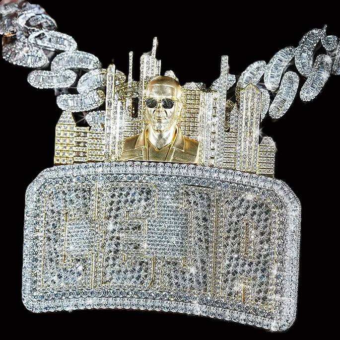จี้เพชรแบบกำหนดเองสุดหรูพร้อมรูปทรงเมืองและรูปคนทองคำประดับเพชรทรงฮิปฮอป โมอิสซาไนต์