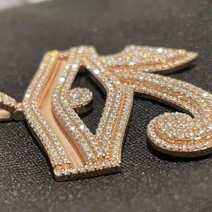 จี้เพชรโมอิสซาไนต์รูปดวงตาอียิปต์สุดหรูหุ้มทองคำชมพู สไตล์ฮิปฮอป ราคาขายส่งจากซัพพลายเออร์อินเดีย