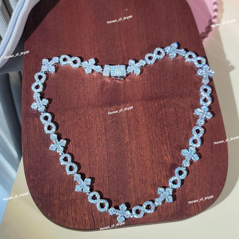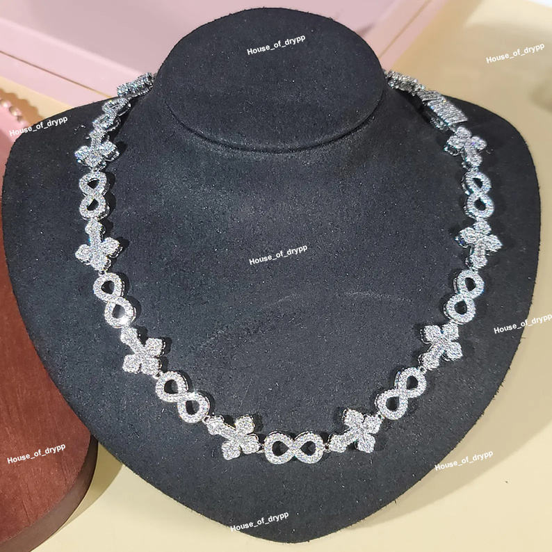 สร้อยคอเงินดีไซน์ใบโคลเวอร์อินฟินิตี้ประดับเพชรเต็มเส้น หรูหราโดดเด่น