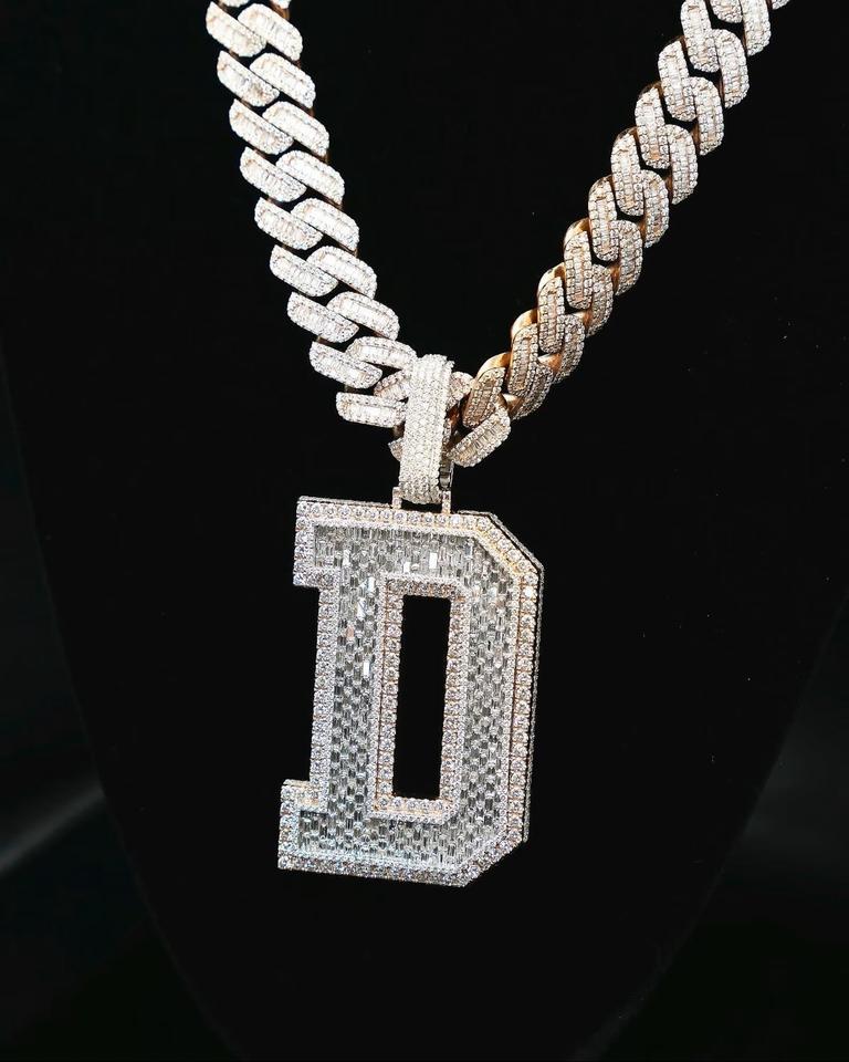 จี้เพชรโมอิสซาไนต์รูปตัวอักษร D แบบหรูหรา ประดับเพชร VVS พร้อมสร้อยคอเงินแท้ 925 ทรงบาแกตต์ สไตล์ฮิปฮอป ของขวัญเครื่องประดับอักษรภาษาอังกฤษ
