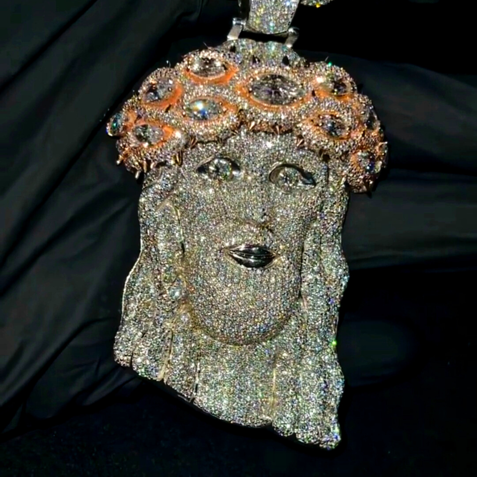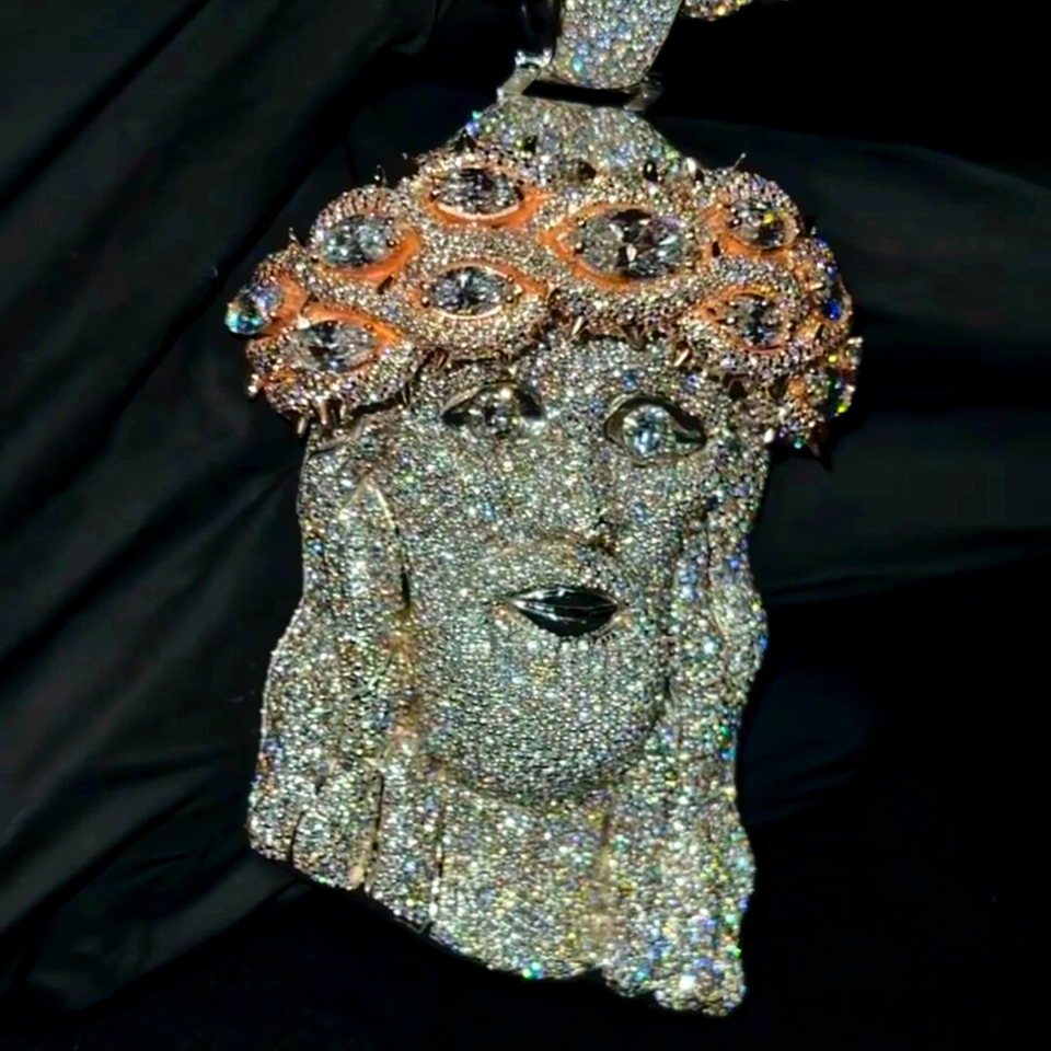 จี้พระเยซูประดับเพชรหรูหรา สไตล์ฮิปฮอป แบบโมอิสซาไนต์ ดีไซน์เพชร VVS ทองชมพูและเงิน สร้อยคอสำหรับงานปาร์ตี้
