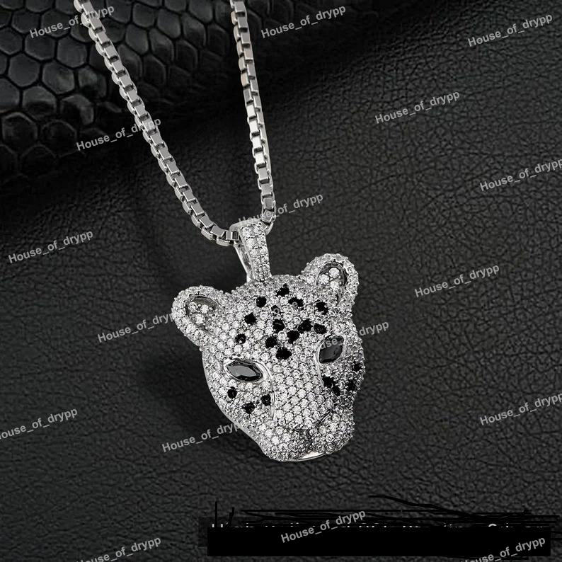 จี้หัวเสือดาวประดับเพชรโมอิสซาไนต์สุดหรู พร้อมสร้อยฮิปฮอปสีเงินแท้ 925 ของขวัญเครื่องประดับสุดโดดเด่น