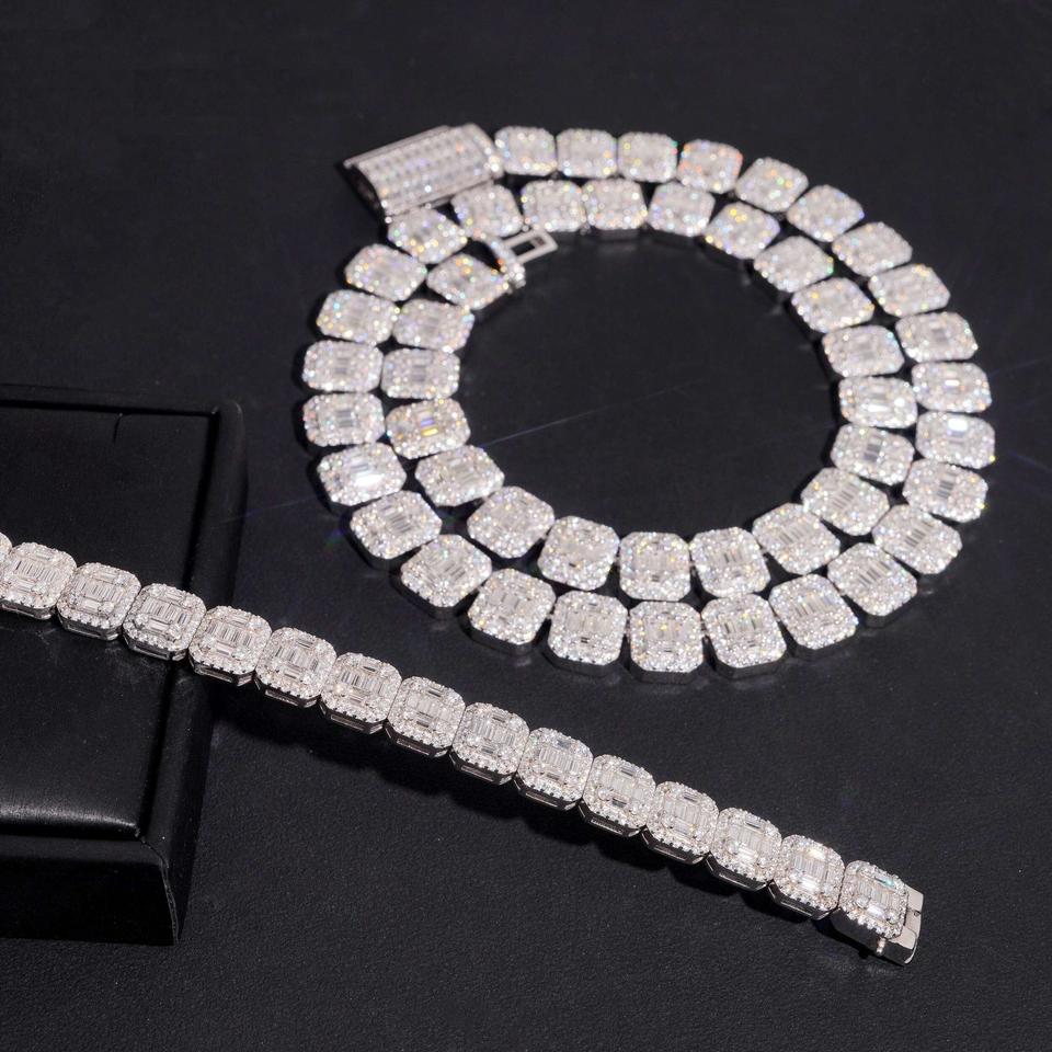 กำไลข้อมือโมอิสซาไนต์ทรงบาแกตต์หรูหรา ประดับเพชร VVS1 สไตล์ฮิปฮอป โดดเด่นสะดุดตา หรูหรา ระยิบระยับ รุ่นโปร