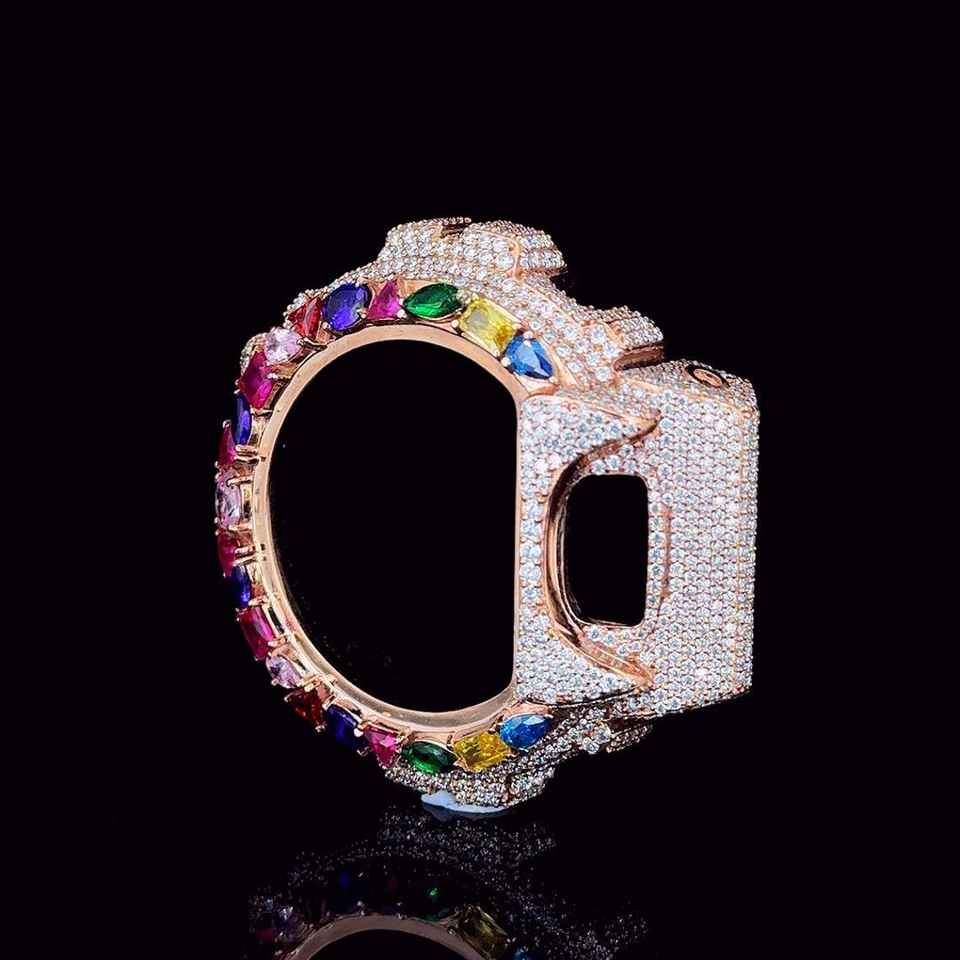 Luxury Iced Out Moissanite Case for DW-6900 - VVS Handmade White Gold Finish Cover
