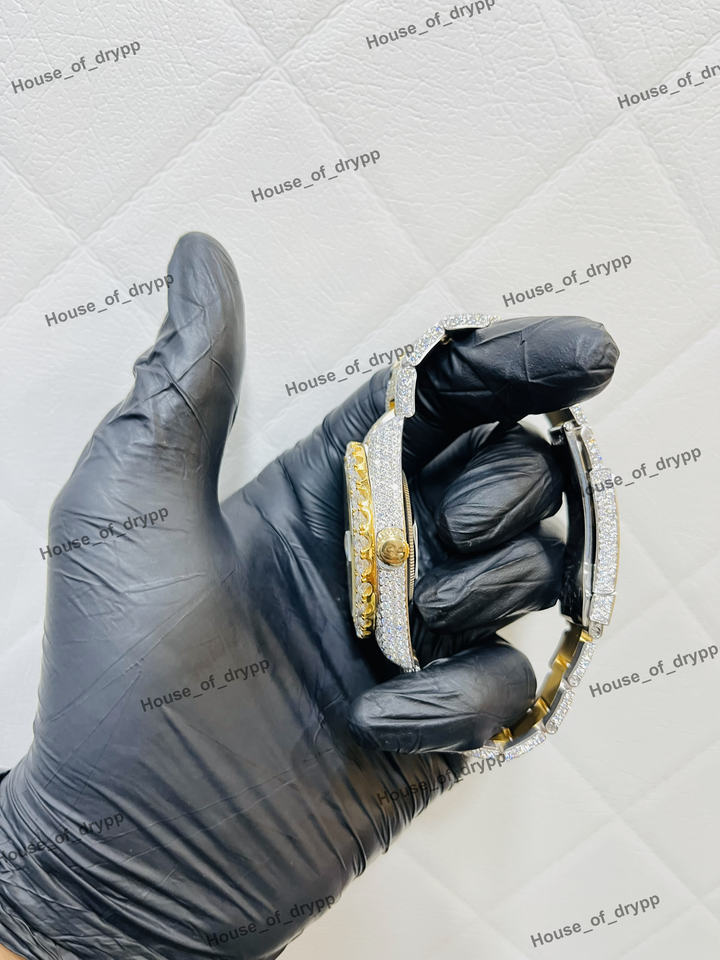 นาฬิกาข้อมือผู้ชายสไตล์ฮิปฮอป หน้าปัดสีน้ำเงิน ประดับเพชรโมอิสซาไนต์สุดหรู พร้อมฟังก์ชั่นวันที่ ตัวเรือนสแตนเลสสตีล