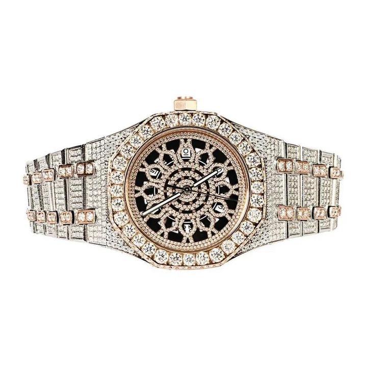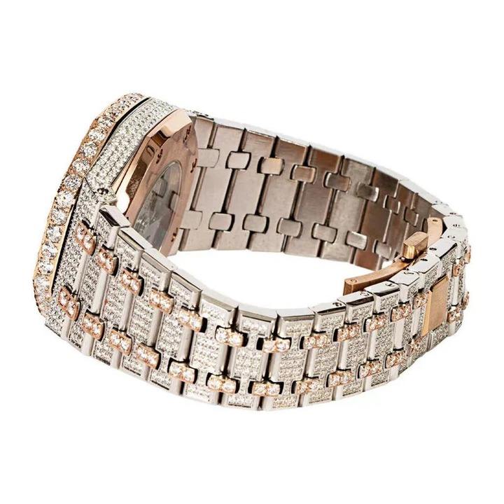 นาฬิกาหรูหราประดับเพชรโมอิสซาไนต์แบบเต็มหน้าปัด สไตล์ฮิปฮอปสองสี ตัวเรือนทองแท้ สำหรับทั้งชายและหญิง แฟชั่นเครื่องประดับ