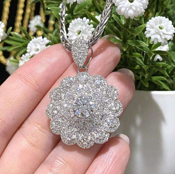 สร้อยคอจี้รูปดอกไม้ประดับเพชรโมอิสซาไนต์ทรงเกล็ดหิมะสุดหรูหรา สีทองขาว สไตล์ฮิปฮอป พร้อมประกายวิบวับระดับ VVS เหมาะสำหรับเป็นของขวัญ