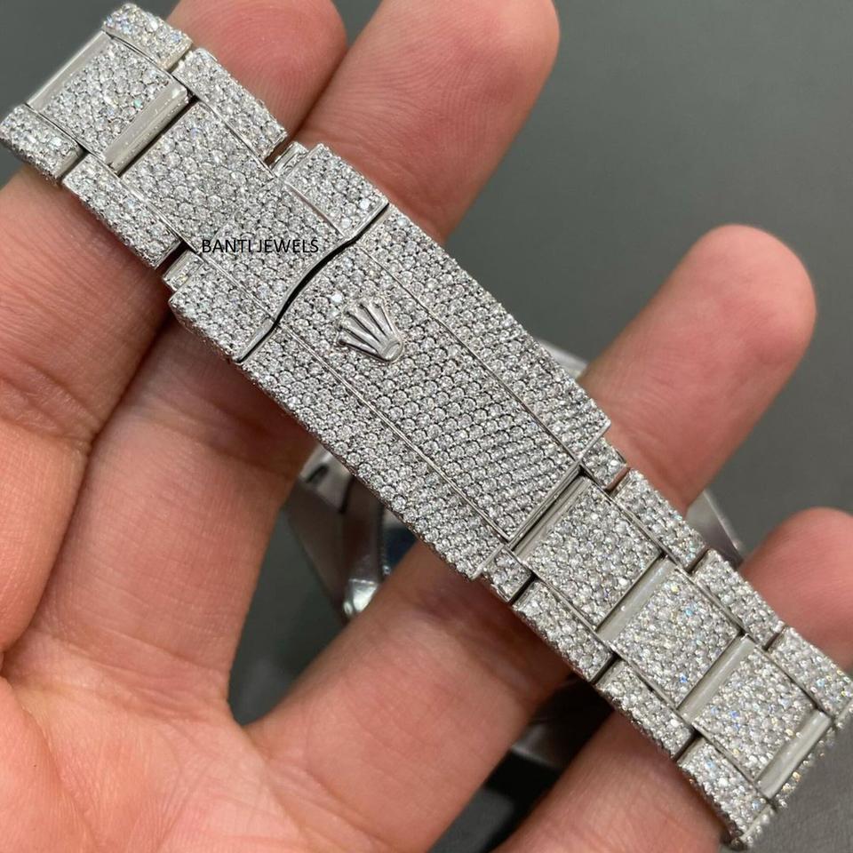 นาฬิกาฮิปฮอปหรูหราประดับเพชรโมอิสซาไนต์ พร้อมกรอบสีโรสโกลด์และสร้อยข้อมือเพชร