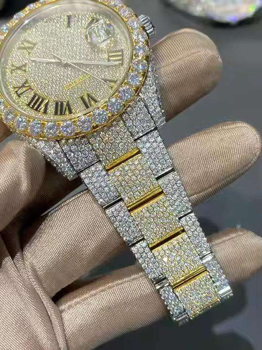 นาฬิกาข้อมือสแตนเลสสตีลหรูหรา ประดับเพชรโมอิสซาไนต์ ระบบควอตซ์อัตโนมัติ เครื่อง ETA สำหรับทุกเพศ