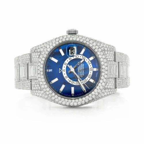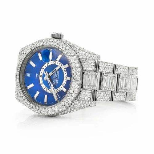 นาฬิกาข้อมือหรูหราสไตล์เพชร ประดับโมอิสซาไนต์ หน้าปัดสีน้ำเงิน ระบบควอตซ์ ขนาด 40 มม.