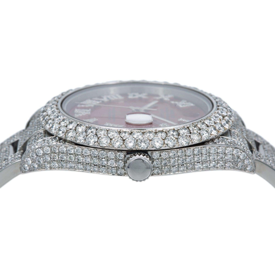 นาฬิกาแฟชั่นสุดหรูสำหรับผู้ชายหน้าปัดโรมันสีแดงแสดงวันที่สแตนเลสนาฬิกาฮิปฮอปรุ่นล่าสุด