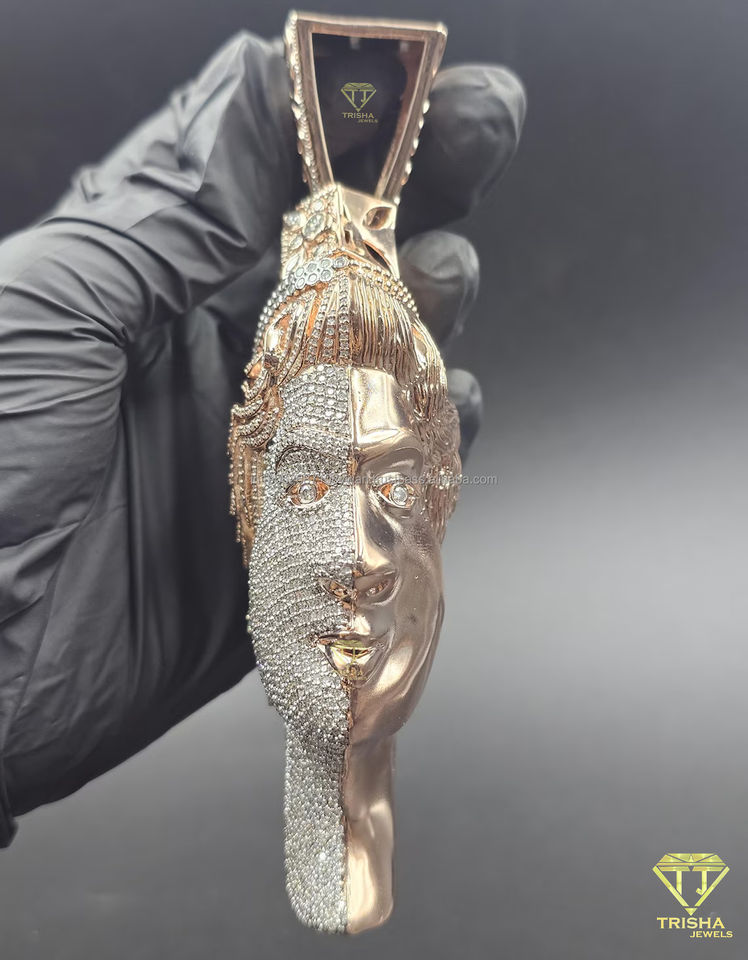 จี้รูปพระราชินีประดับเพชรหรูหรา พร้อมมงกุฎเพชร และสร้อยคอดีไซน์เนอร์สองสีแบบโดดเด่น