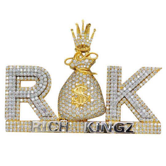 จี้รูปถุงเงินมงกุฎหรูหราประดับเพชรโมอิสซาไนต์ VVS ชุบทอง สไตล์ฮิปฮอป