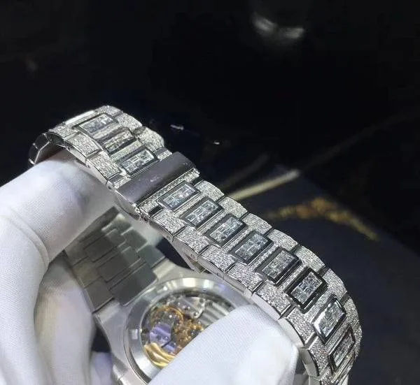 นาฬิกาหรูหราประดับเพชรโมอิสซาไนต์ทรงกลมและทรงบาแกตต์ พร้อมขอบเพชรรุ่นล่าสุด สไตล์ฮิปฮอป ตัวเรือนสแตนเลสสตีล
