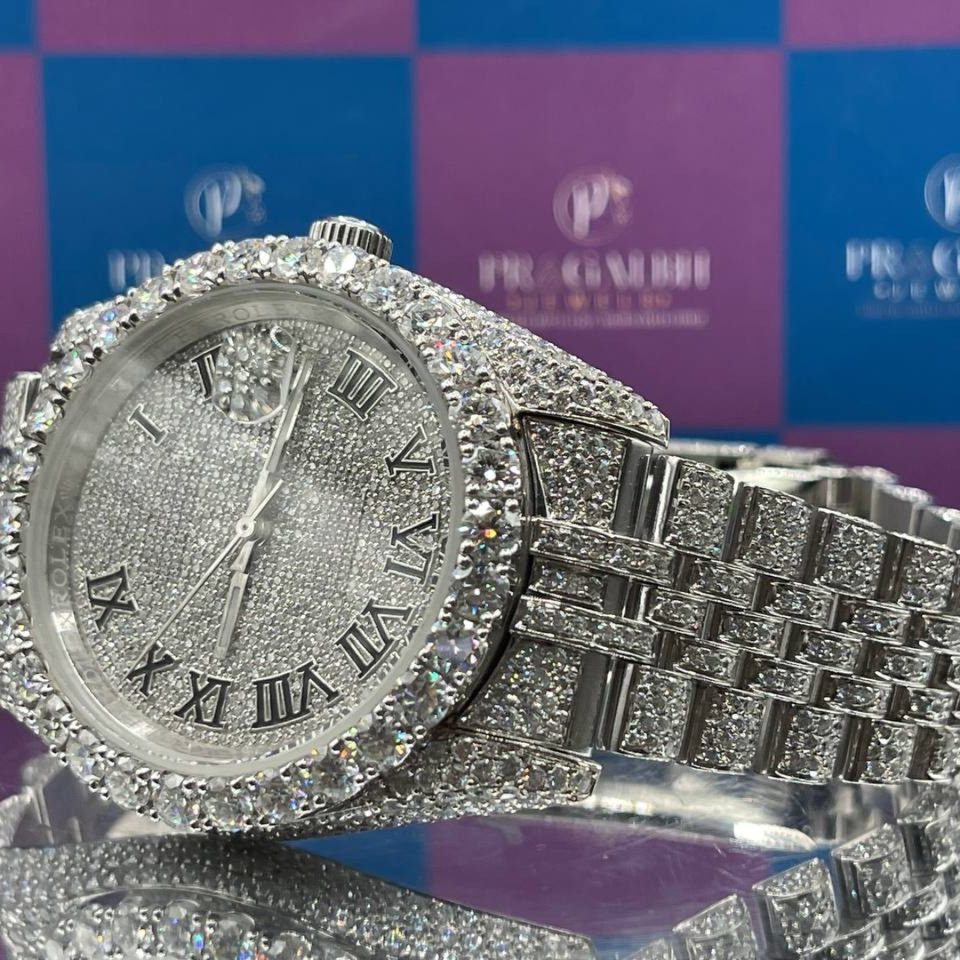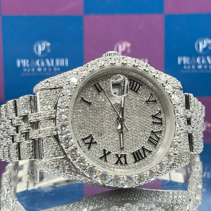 นาฬิกาควอตซ์สีเงินหรูหราประดับเพชรสำหรับผู้ชาย สายสแตนเลสสตีล หน้าปัดแบบโรมัน ดีไซน์แบบกำไลข้อมือ
