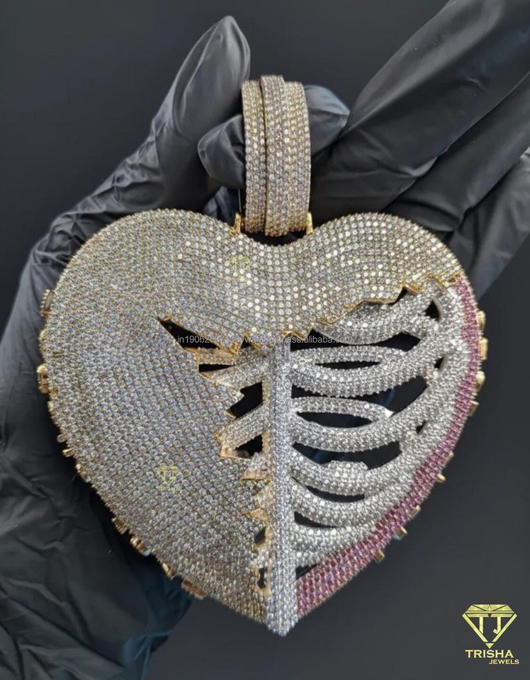 จี้รูปหัวใจแบบสเกเลตันประดับเพชรหรูหรา สร้อยคอรูปหัวใจแตกประดับเพชรเต็มเส้น จี้รูปหัวใจรูปทรงกระดูกซี่โครง