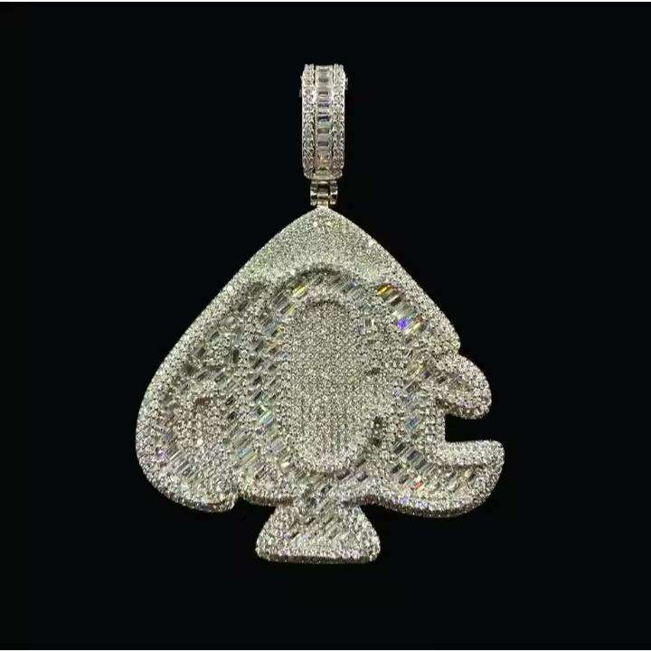 จี้รูปไพ่สปาด ประดับเพชรโมอิสซาไนต์ VVS หรูหรา สไตล์ฮิปฮอป ชุบทอง น่ารัก