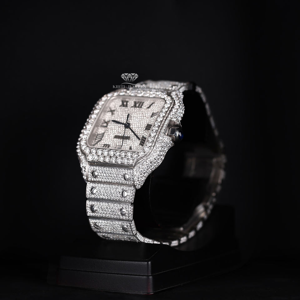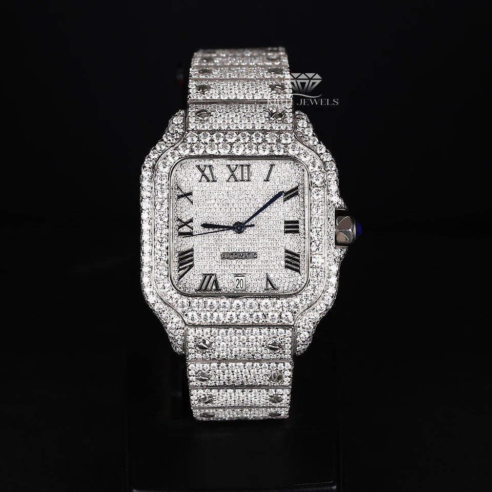 นาฬิกาอัตโนมัติหน้าปัดโรมันโทนสีขาวประดับเพชร