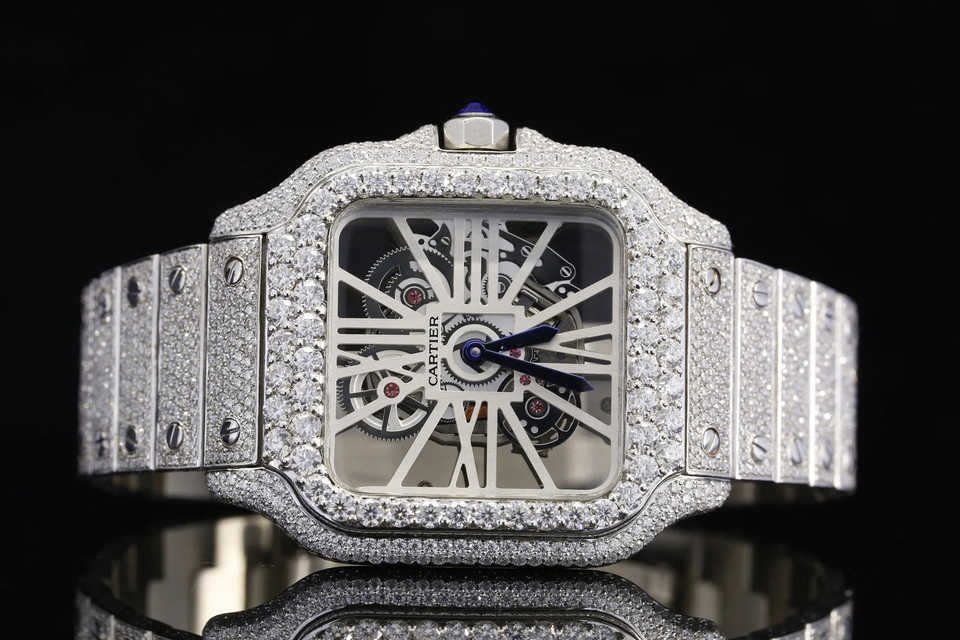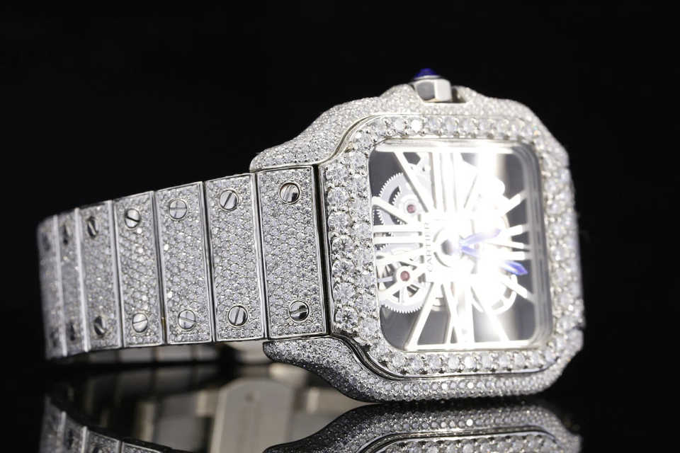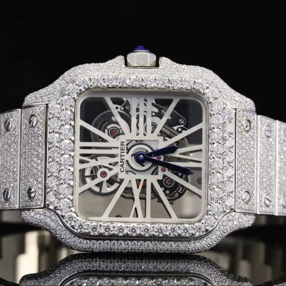 นาฬิกาข้อมือผู้ชายดีไซน์หรูหรา ประดับเพชรทรงสี่เหลี่ยม โครงสร้างเปลือย สแตนเลสสตีล ระบบออโตเมติก พรีเมียม