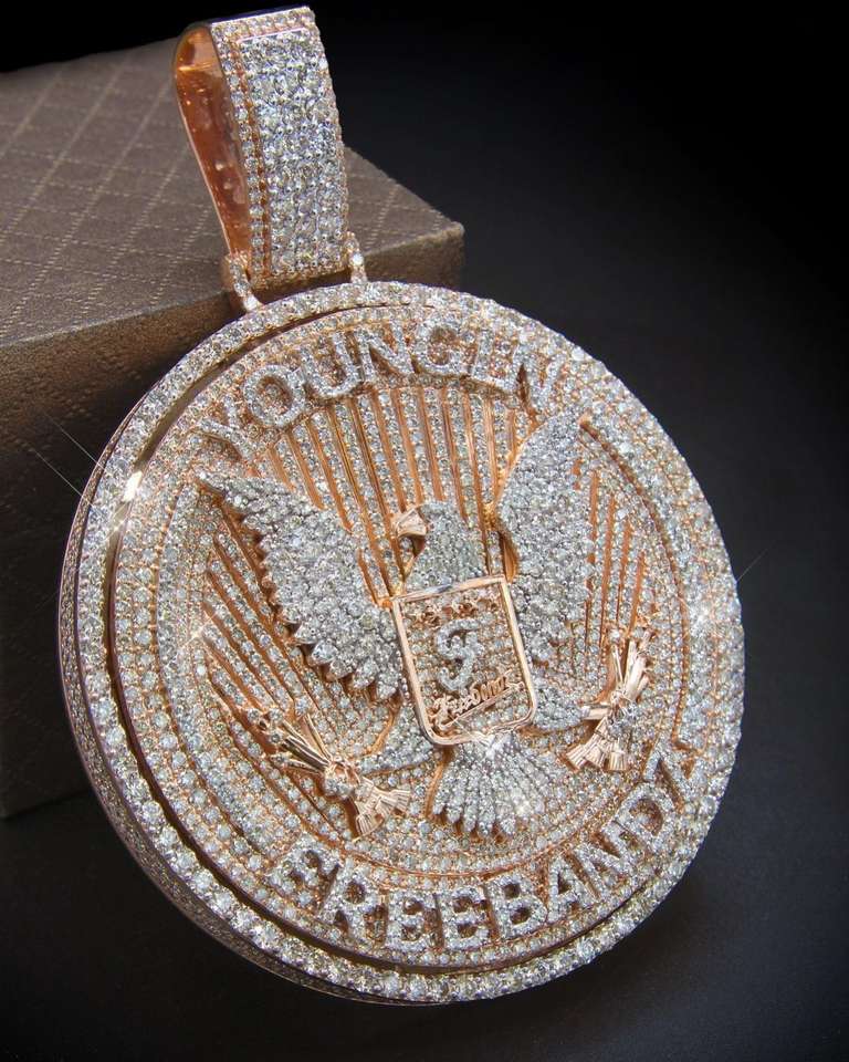 จี้เหรียญ Luxury Iced Out Youngin City Freebandz ชุบทองคำสีกุหลาบ สไตล์ฮิปฮอป เงินแท้ 925 ประดับโมอิสซาไนต์ 12 กะรัต เครื่องประดับสำหรับทุกเพศ