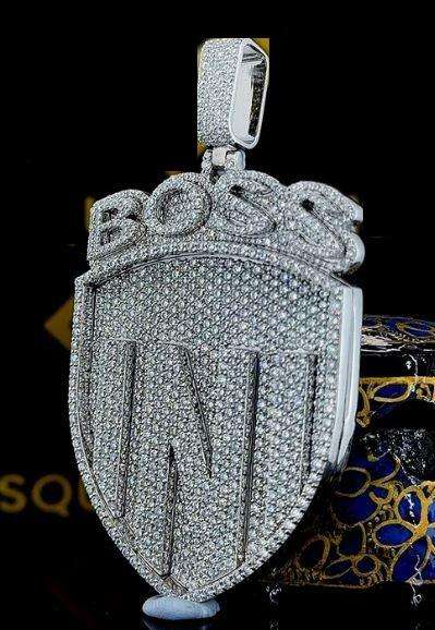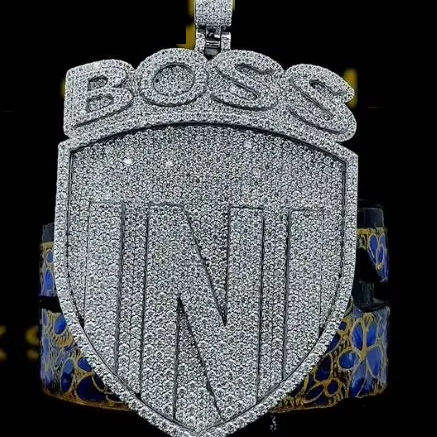 จี้รูปโล่ประดับเพชรโมอิสซาไนต์ 12 กะรัต VVS หรูหรา พร้อมตัวเรือนเงินแท้ชุบทอง 10K/18K สไตล์ฮิปฮอปสุดอลังการ