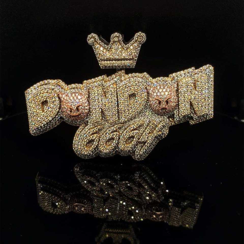 จี้เพชรทรงมงกุฎ Luxury Iced Pardon 69 ประดับมอสซาไนต์ทรงเหลี่ยม ชุบทอง 18K เงินสเตอร์ลิง VVS1 เครื่องประดับฮิปฮอปสุดหรู ดีไซน์พิเศษ