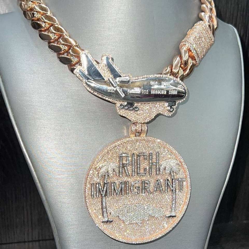 จี้รูปเครื่องบินหรูหราประดับเพชรโมอิสซาไนต์ 30 กะรัต ทรงบริลเลียนท์คัต เงินแท้ชุบทอง 10K สไตล์ฮิปฮอปคิวบา