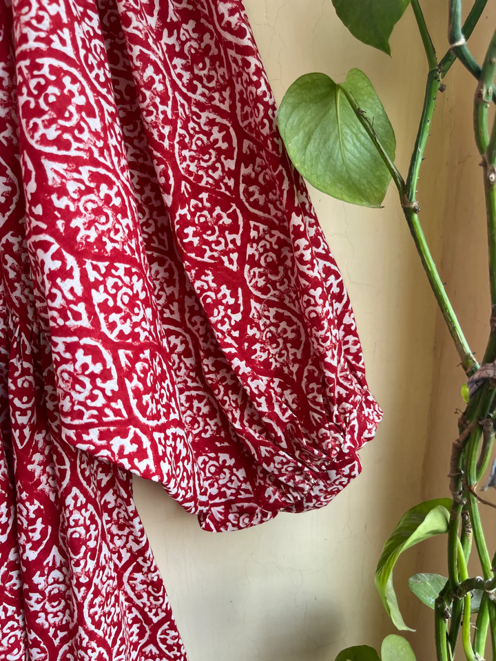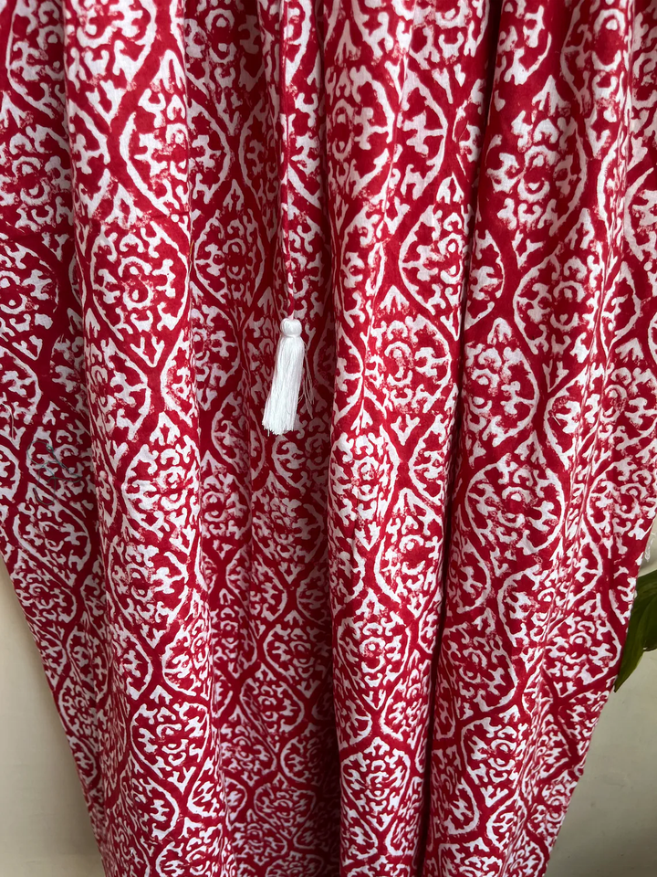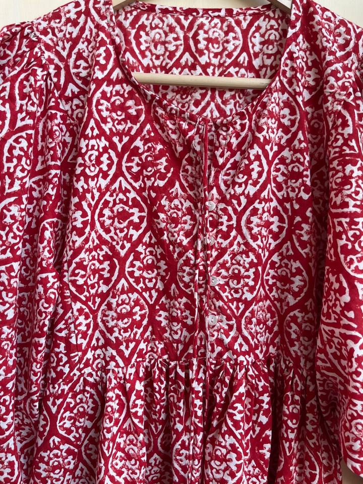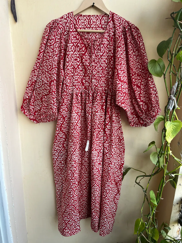 เดรสยาวลายดอกไม้สไตล์โบฮีเมียน ผ้าฝ้ายพิมพ์ลายด้วยมือ ชุดอินเดีย แขนยาว คอวี ลายดอกไม้ ชุดเดรสสำหรับงานปาร์ตี้สำหรับผู้หญิง