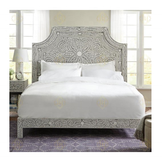 เตียงฝังกระดูกอินเดียหรูหราเฟอร์นิเจอร์มือทำอินเดียกระดูกและแม่ของเตียงฝังมุกขัดแม่ของเตียงฝังกระดูกมุก