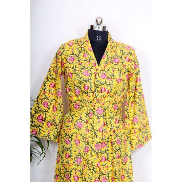 ชุดเดรสผ้าฝ้ายอินเดียพิมพ์ลายด้วยมือสุดหรูสำหรับผู้หญิงและเด็กผู้หญิง คอวีลึก ชุดเจ้าสาว เสื้อเชิ้ตยาวปานกลาง ติดกระดุม สไตล์ใหม่ ทรงเข้ารูป