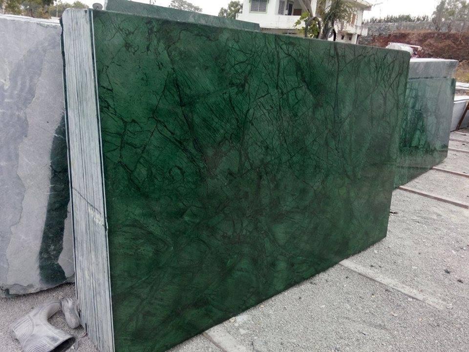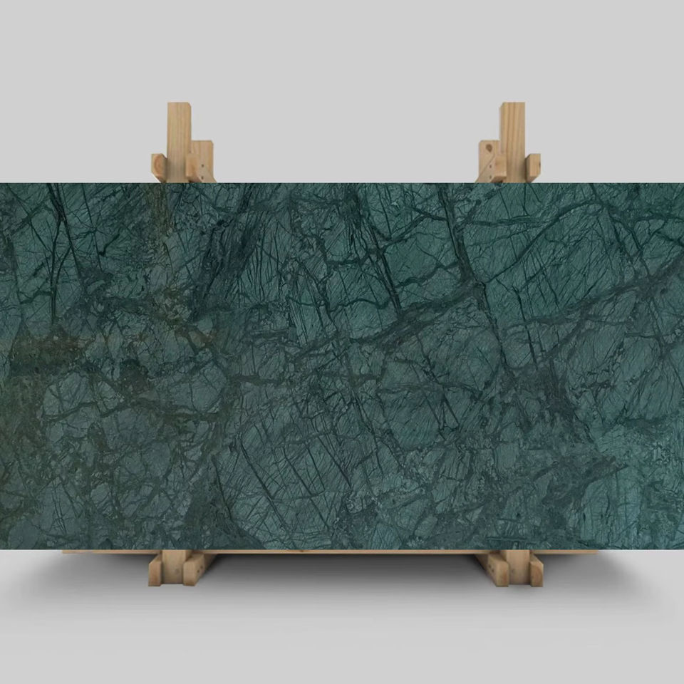 แผ่นผนังหินอ่อนสีเขียวอินเดียหรูหราขัดเงาทันสมัยสำหรับเคาน์เตอร์ครัว อ่างล้างหน้า ห้องน้ำ โต๊ะรับประทานอาหารกลางแจ้ง ทนทาน