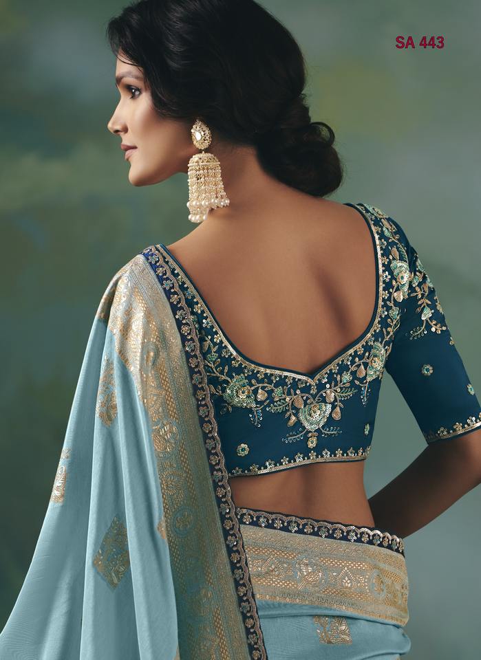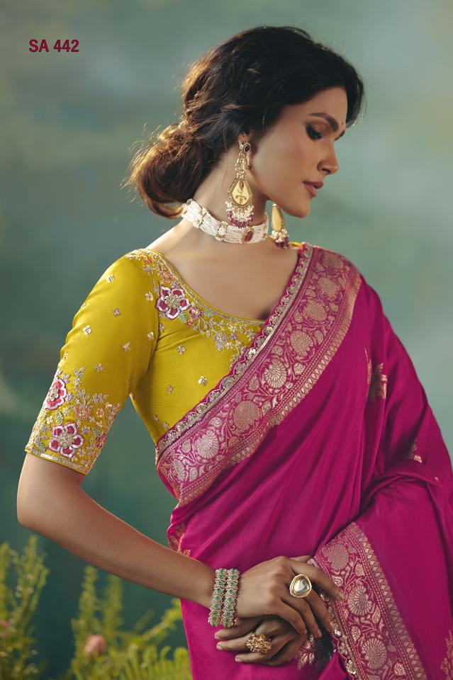 การบรรจุ:ผ้าซารี 1 ตัวพร้อมเสื้อที่ไม่ได้เย็บ