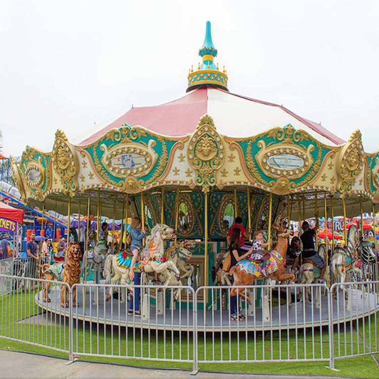 เครื่องเล่นม้าหมุนไฟเบอร์กลาสสุดหรู สำหรับใช้ภายใน/ภายนอกอาคาร 36 ที่นั่ง พร้อมจำหน่าย