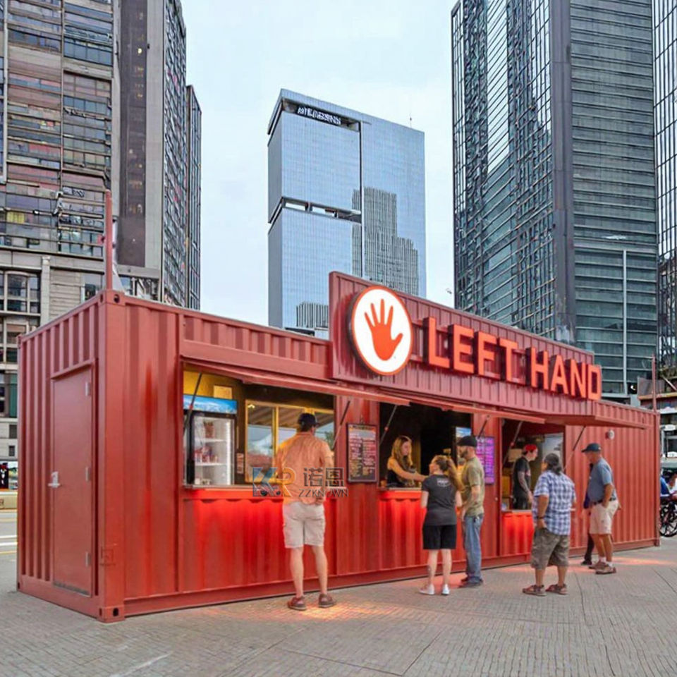 ร้านอาหารเคลื่อนที่แบบตู้คอนเทนเนอร์เหล็กสำเร็จรูปหรูหรา พร้อมบาร์ ร้านกาแฟ และซุ้มขายอาหารกลางแจ้ง