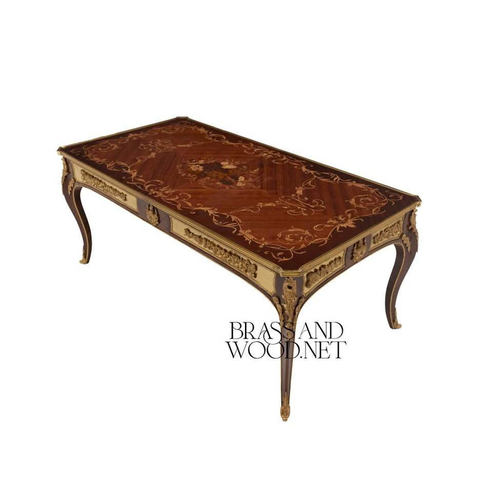 โต๊ะกาแฟหรูหราประดับทองเหลืองพร้อมงานไม้ประณีตสำหรับตกแต่งห้องนั่งเล่นอย่างสง่างาม