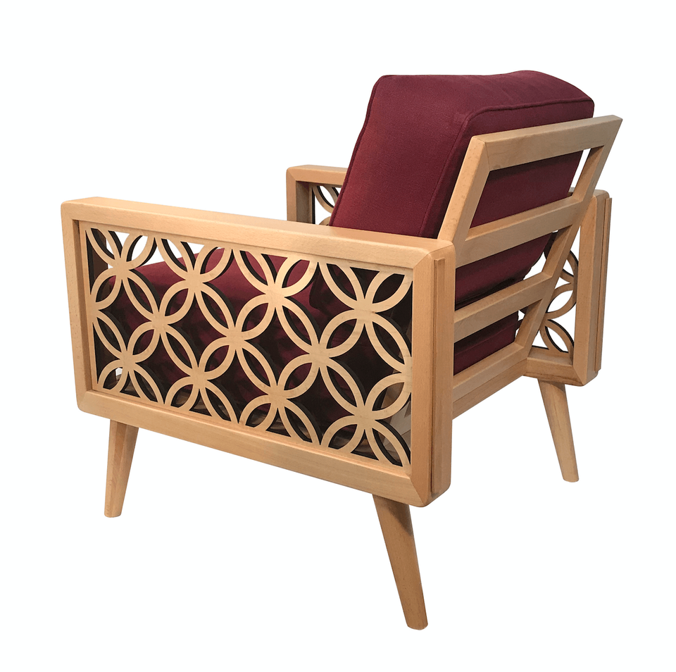 เก้าอี้เท้าแขนแบบวงกลมที่เชื่อมต่อกันอย่างหรูหราผ้าหุ้มเบาะสีแดงสำหรับห้องนั่งเล่นบ้านเฟอร์นิเจอร์โรงแรม